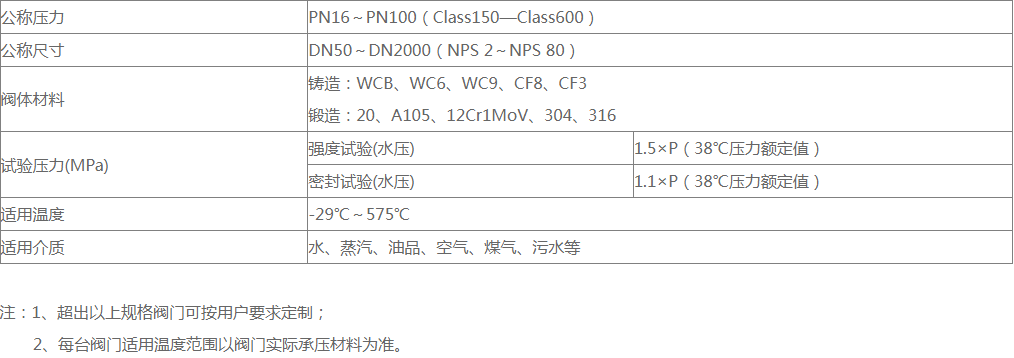 ? 閥體材料、結(jié)構(gòu)型式,密封面材料和填料可根據(jù)實際工況或用戶要求合理選配,能適用于各種壓力、溫度及介質(zhì)工況;